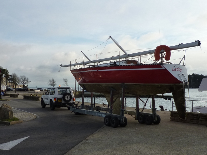 Le froid est tombé.... la neige pas encore... du moins à Bénodet ! Sortie d'eau de Letty.... Vive le point de levage !