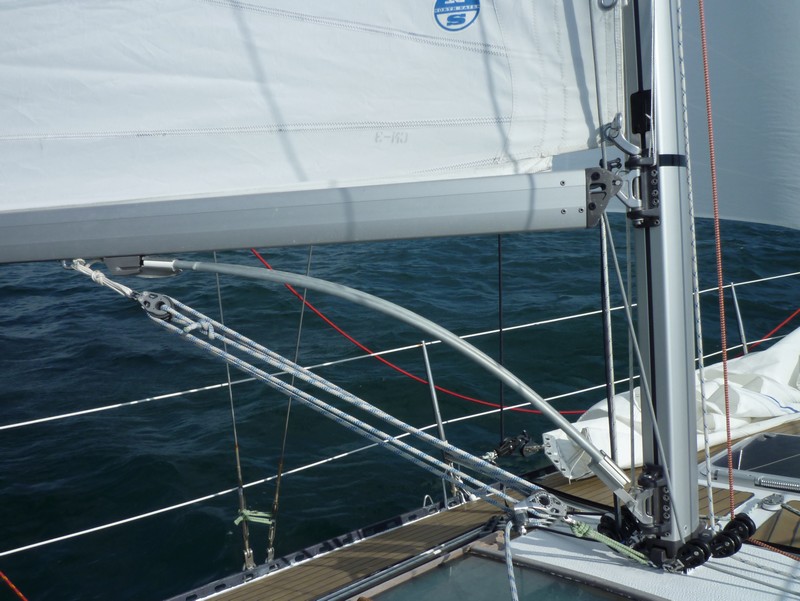 J'ai complété mon gréement par un "Boom Kicker" de chez Sparcraft que mon associé m'a cédé : plus léger qu'un halebas rigide, discret... Top !