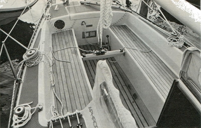 L'embase de mât est bien sûr spécifique et s'avère trés pratique : tant par la fixation des poulies de renvoi de drisses que par le passe pont intégré pour les câbles électriques / girouette / VHF.